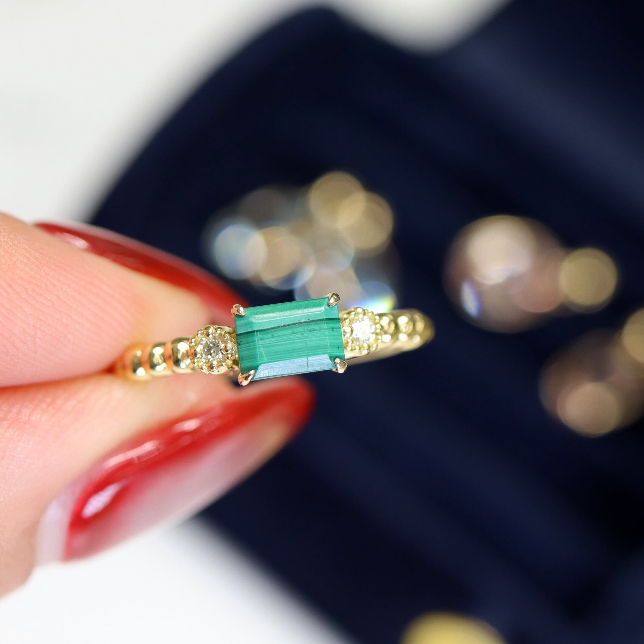 K18YGマラカイトダイヤモンドリング D0.05ct
