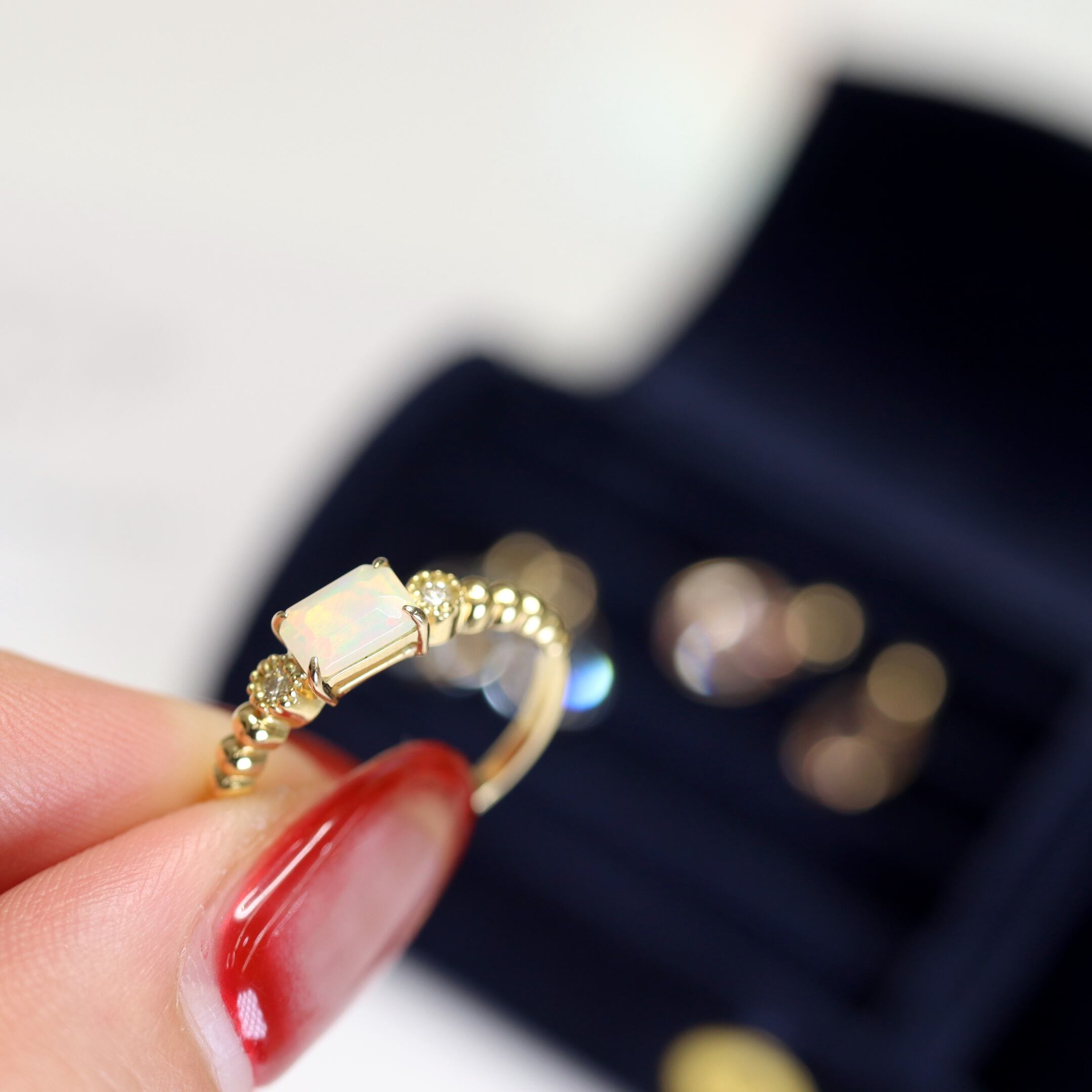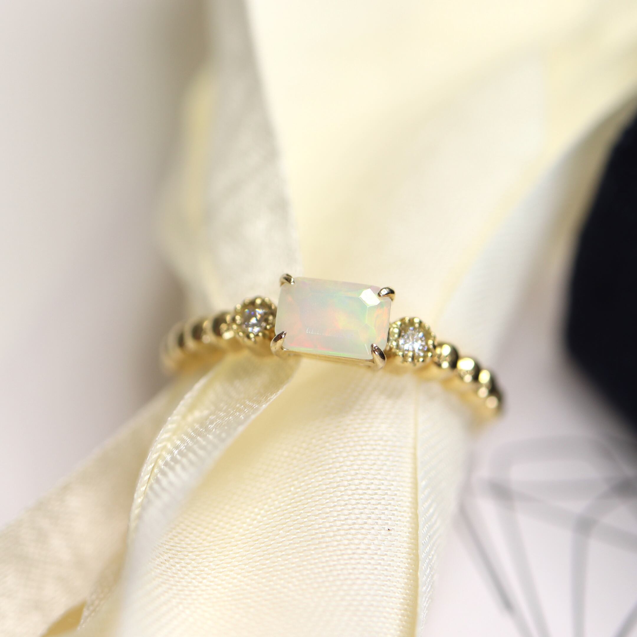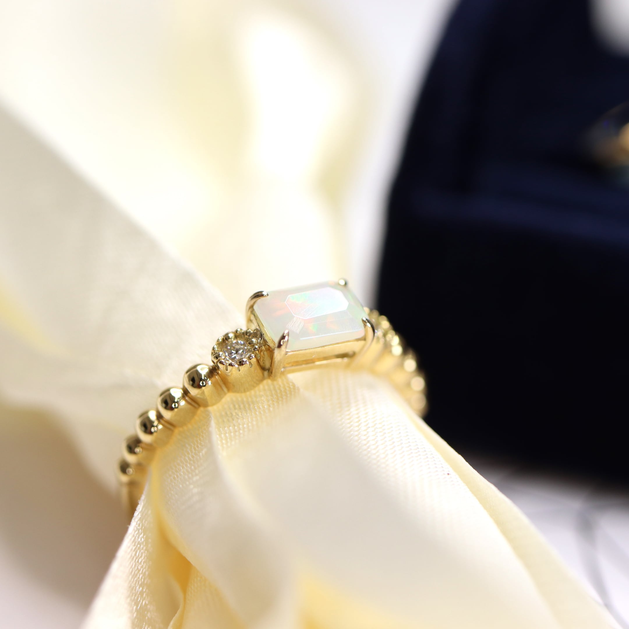 ポコポコデザインのデザインに、ストーンを横置きにセッティングした