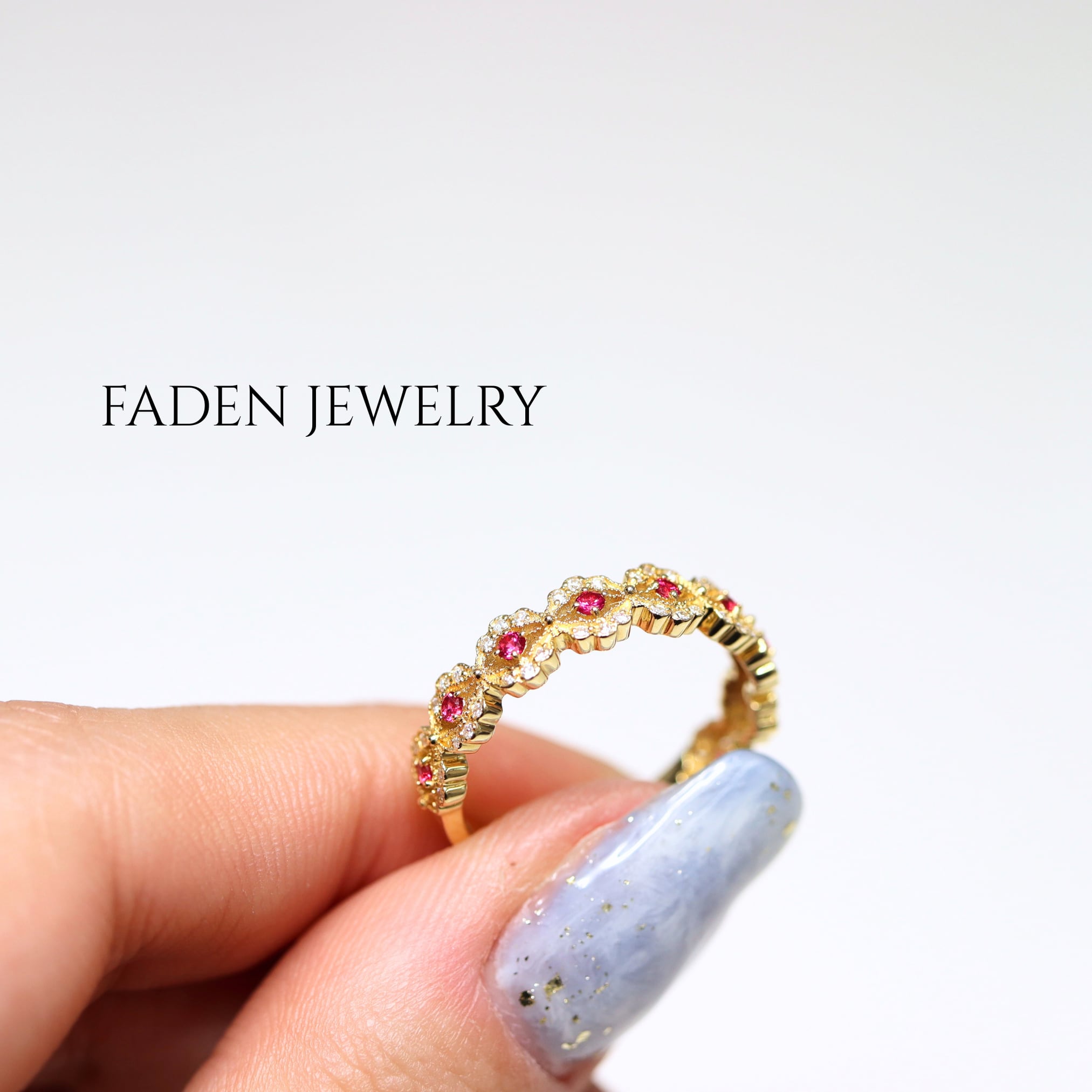 繊細なミル打ちを贅沢に施し、ピンクスピネルを使用した