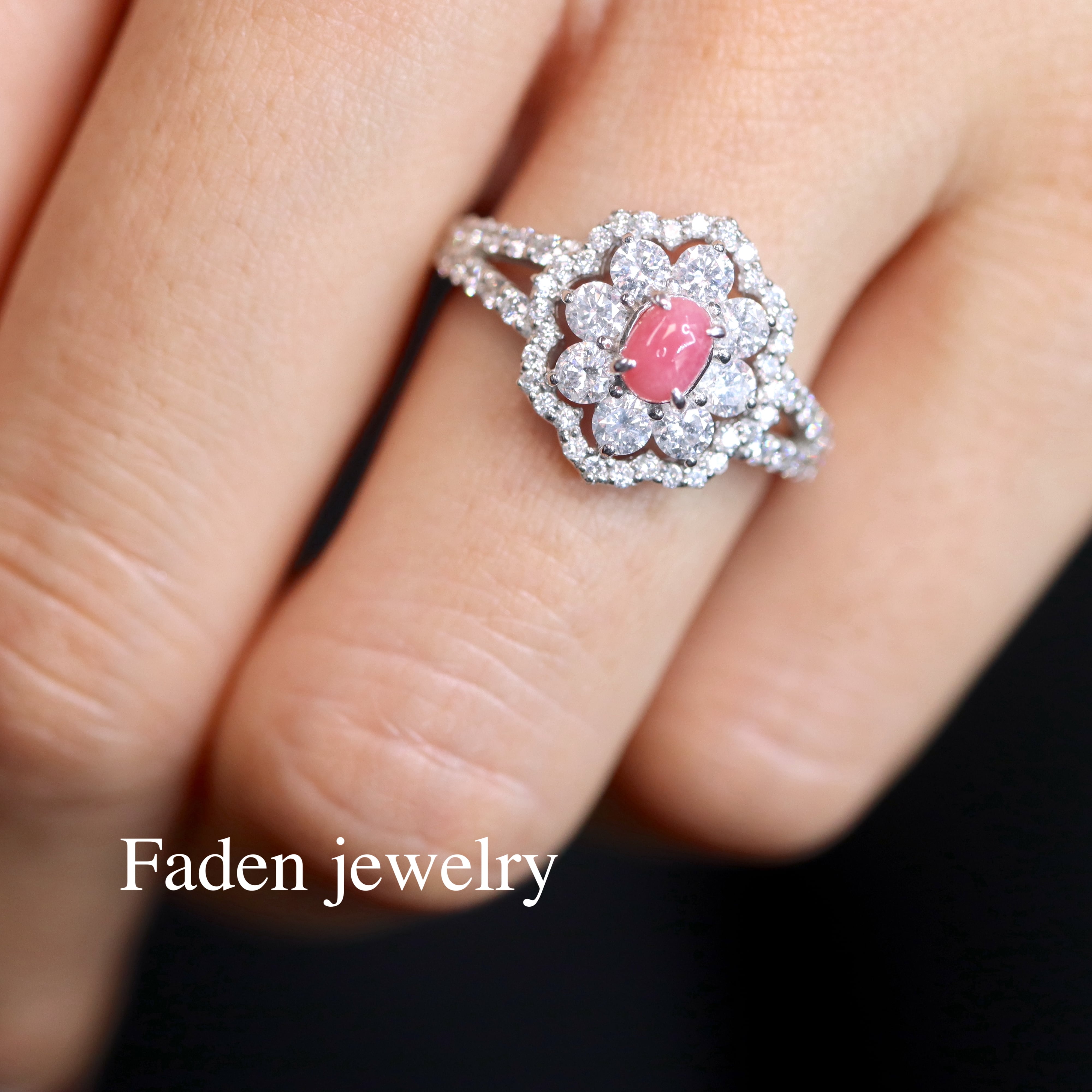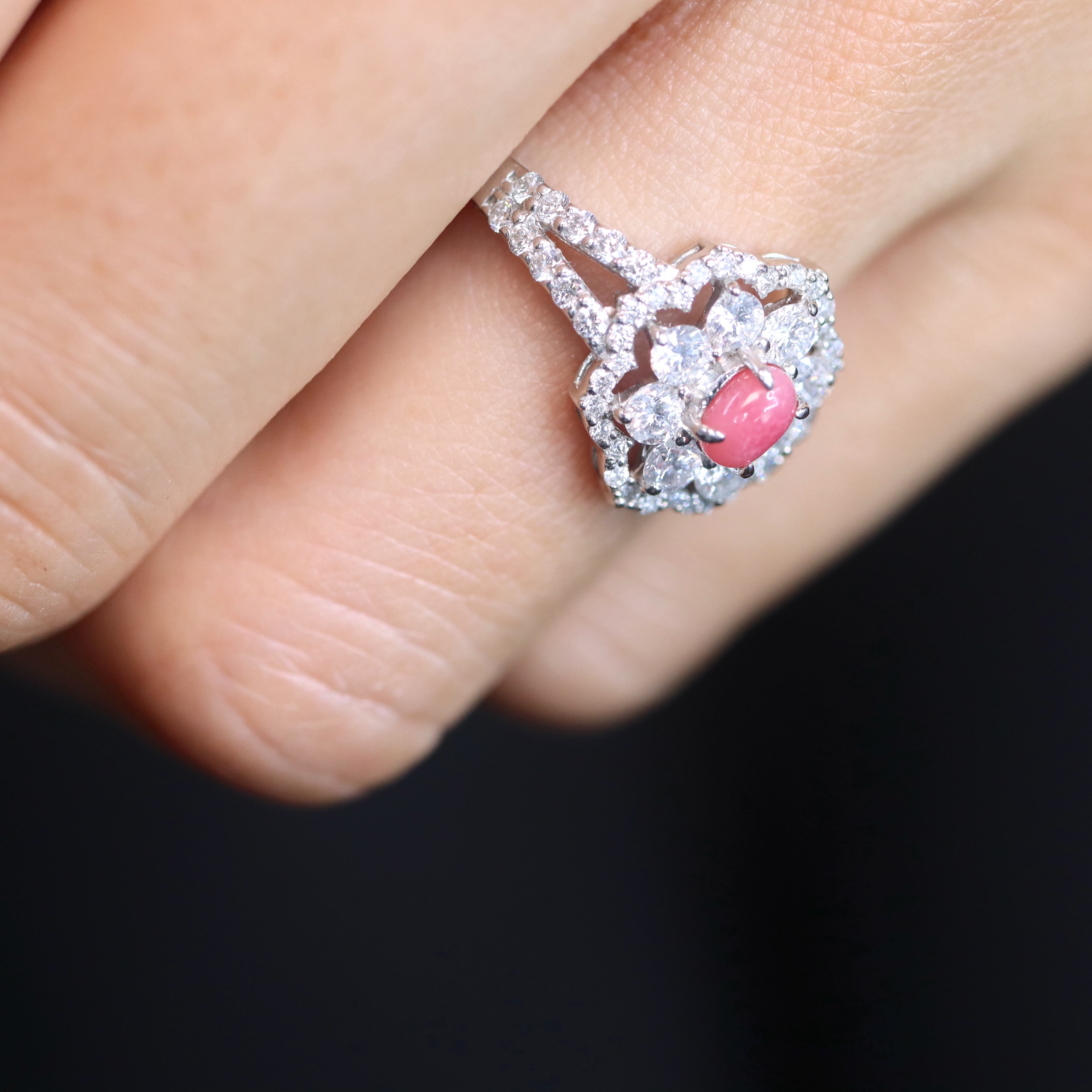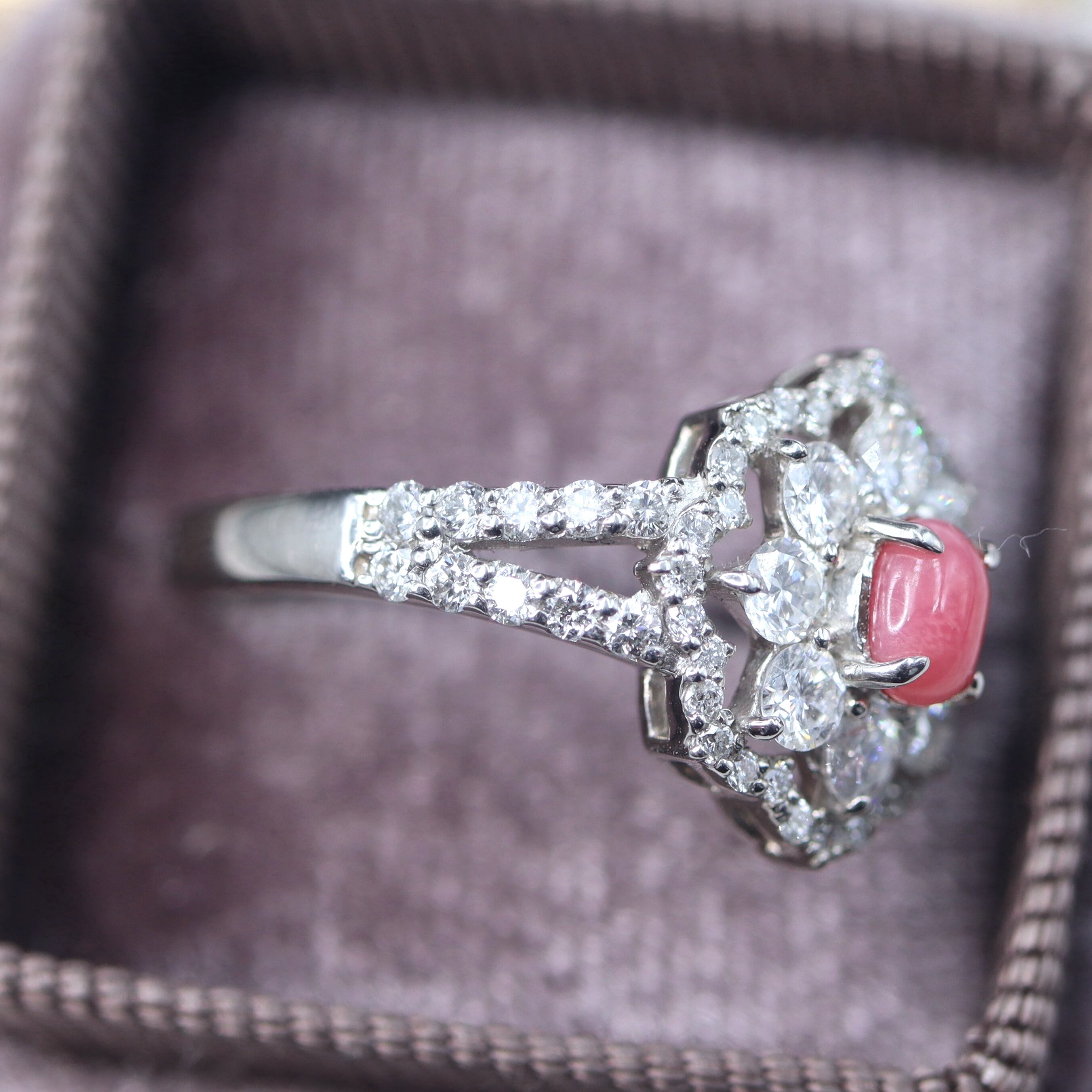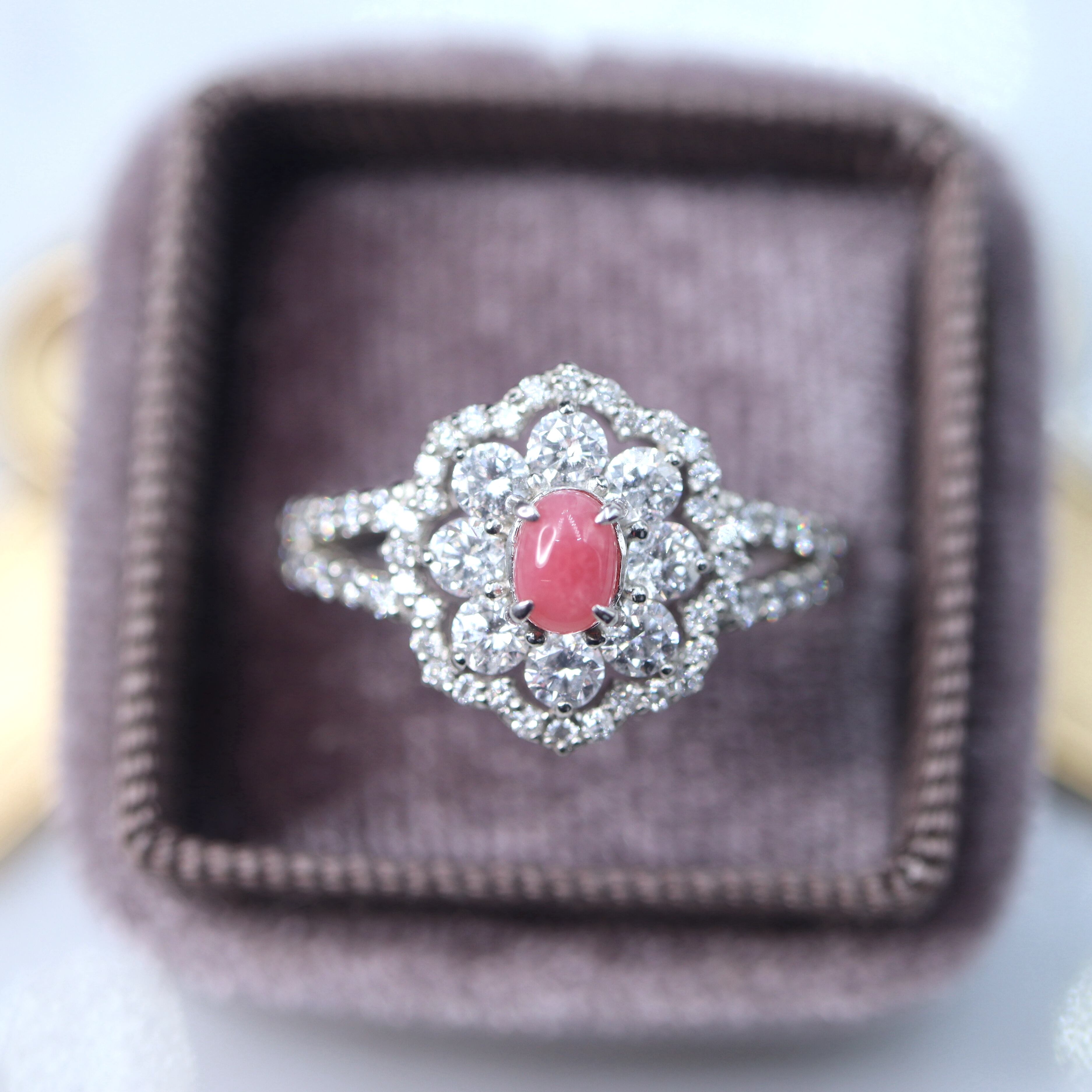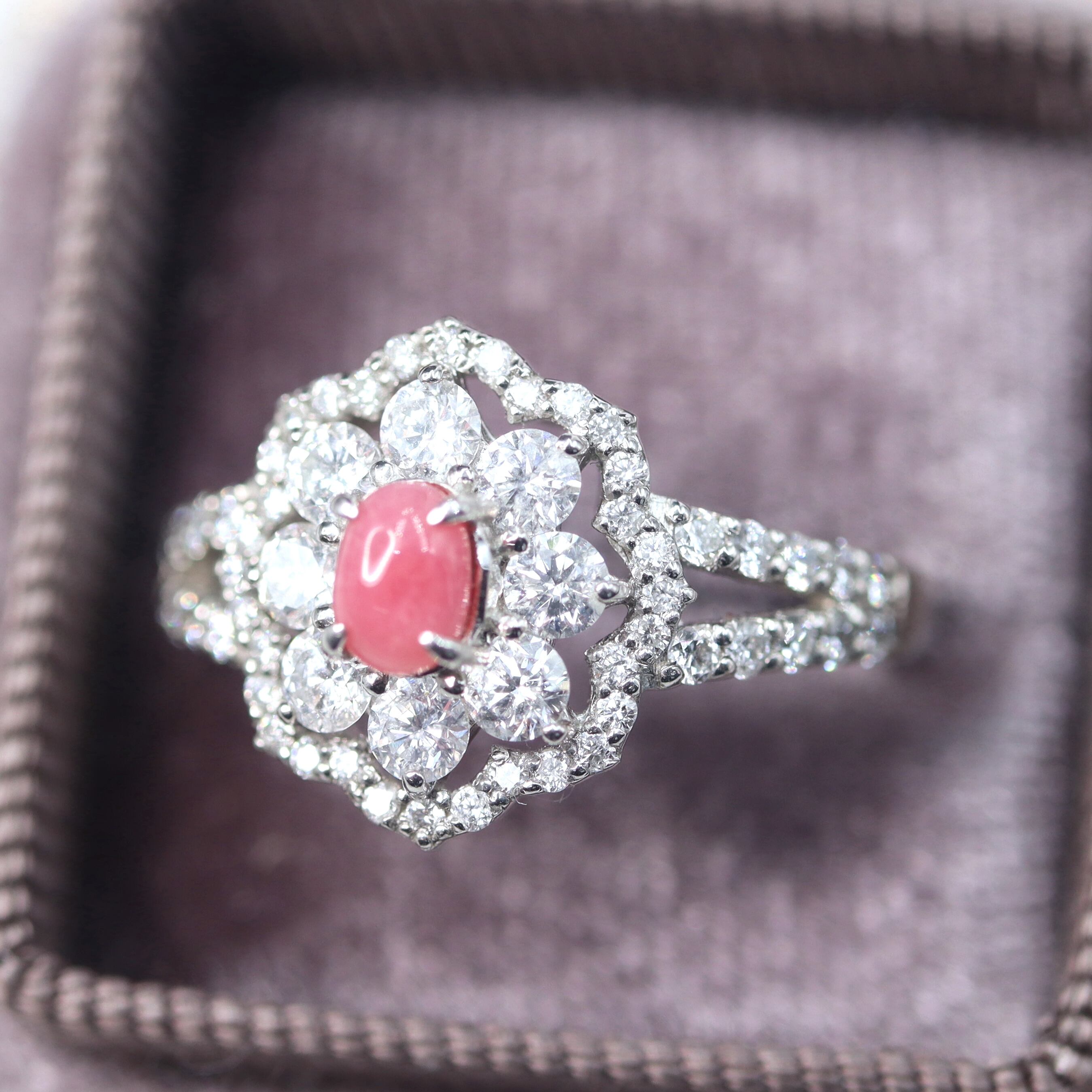 ダイヤモンドの取り巻きデザインがとても素敵な仕上がりで