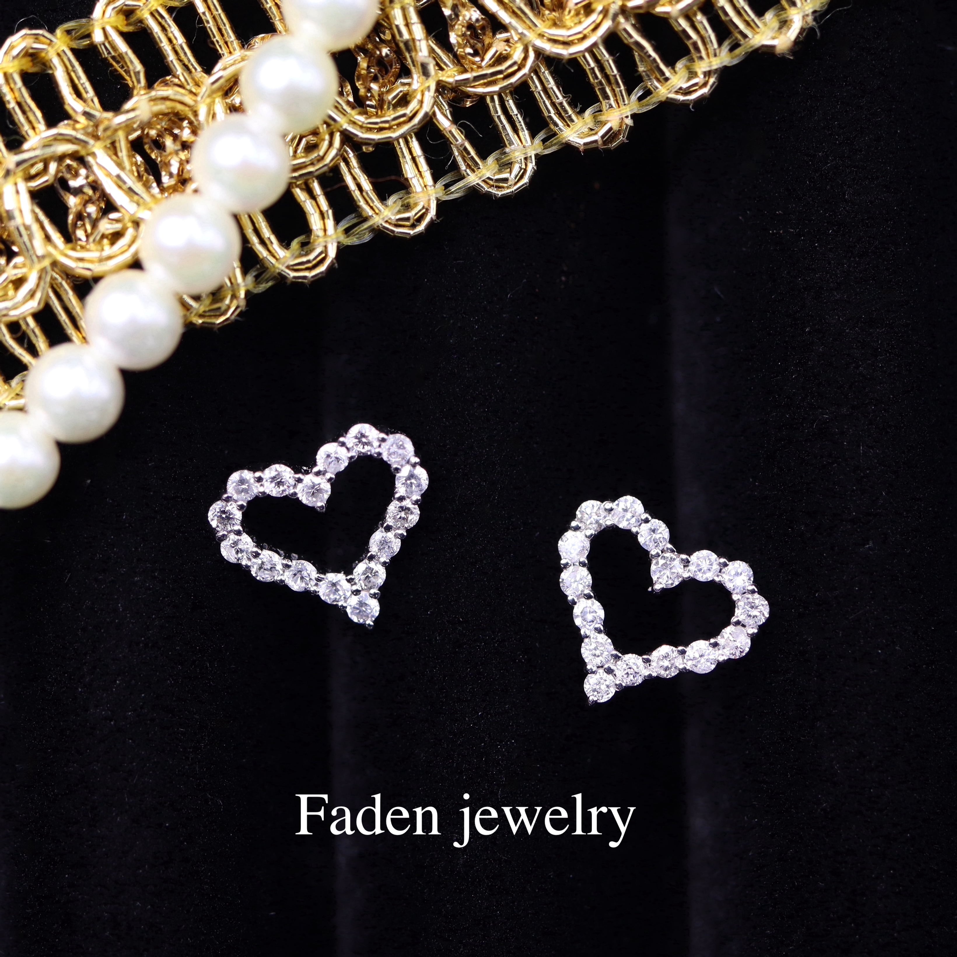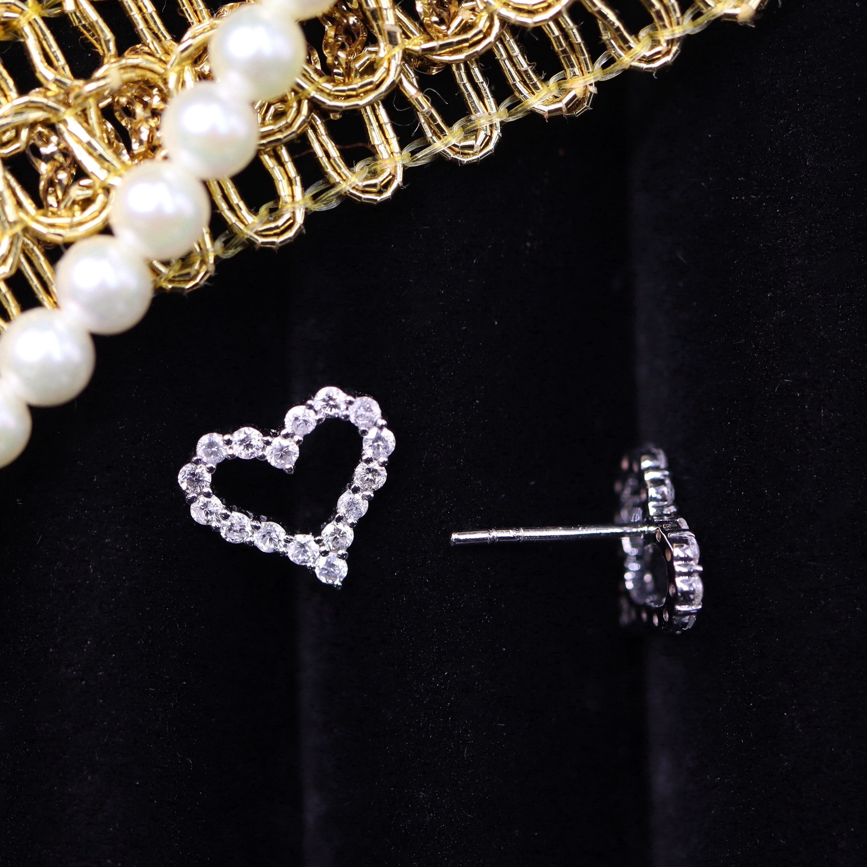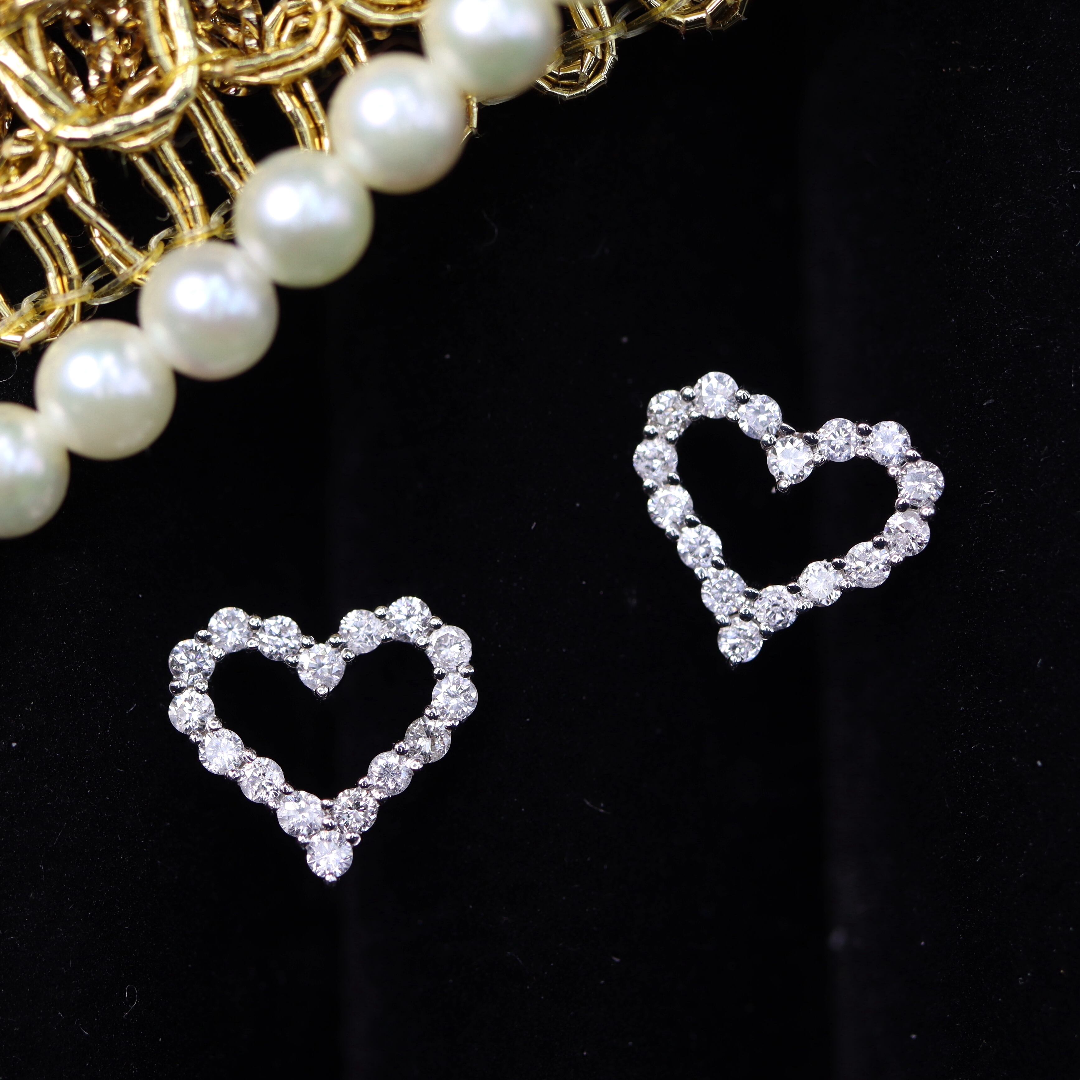 K18WG ダイヤモンド【プチハート】ピアス D0.15ct